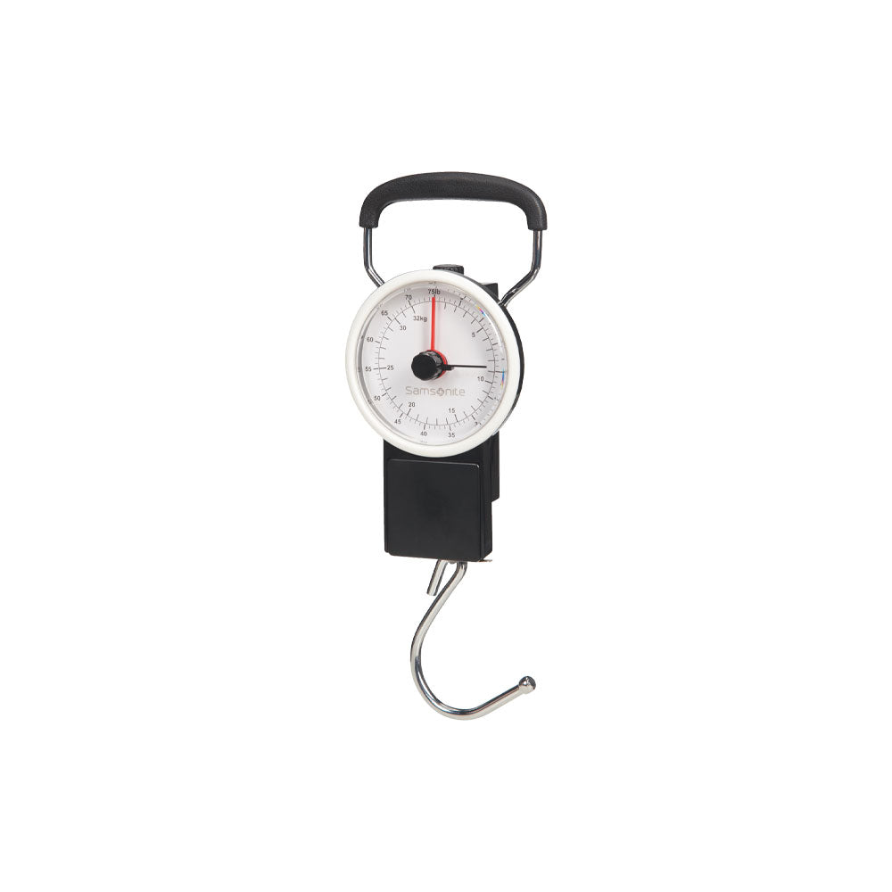 Libra weighs Samsonite suitcase